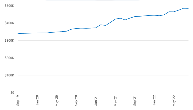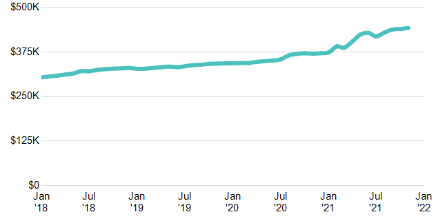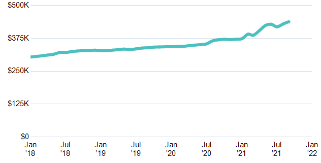 Median Estimated Home Value:$437,970 —– Updated: 09/30/2021 —– Change over last month: 2.08% —– Change over last 12 months:+18.56%
