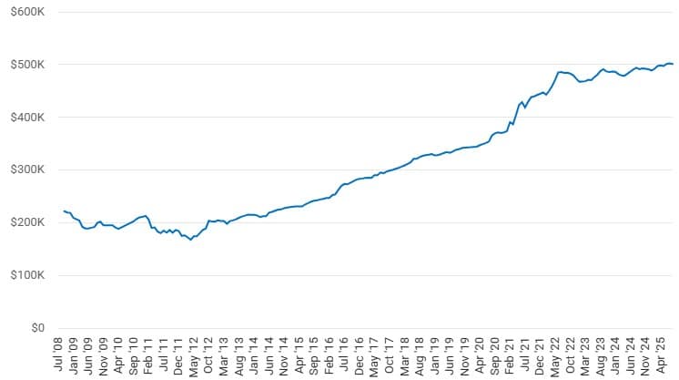 Median Estimated Home Value: $501,040 Updated: 06/30/2025
