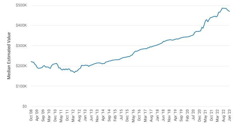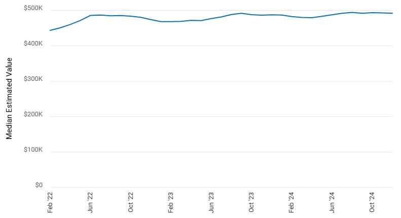 Median Estimated Home Value: $493,140 Updated: 02/28/2025