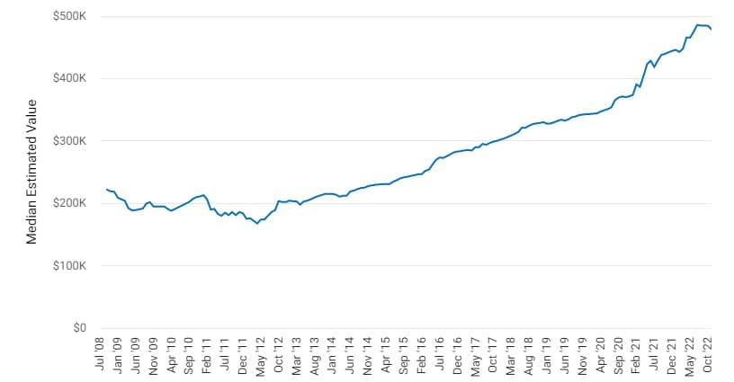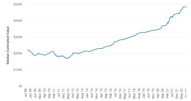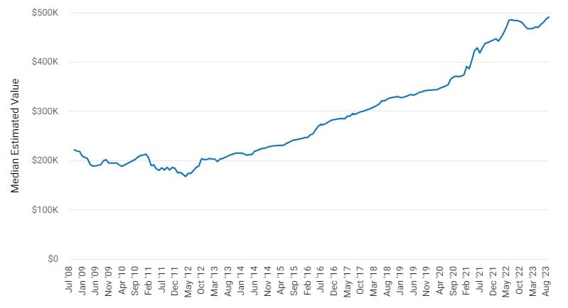 Median Estimated Home Value $496,480 Updated October 31, 2025